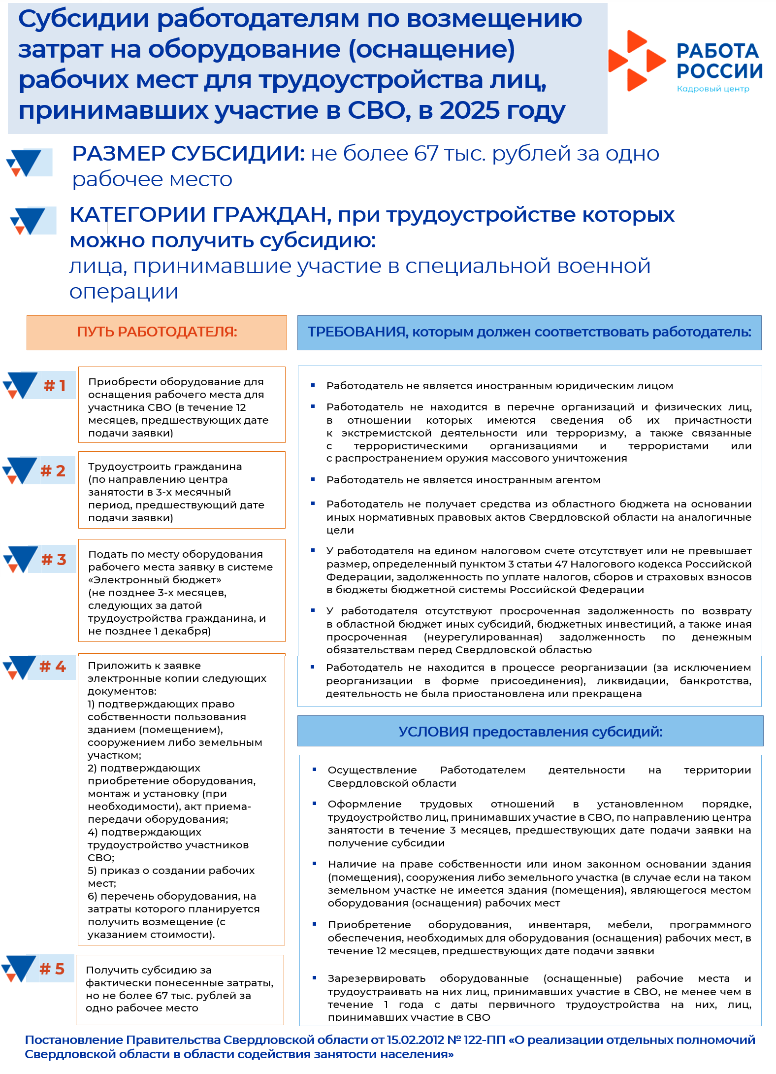 В связи с изменением в Порядок предоставления субсидий юридическим лицам и индивидуальным предпринимателям (с изменениями в постановление Правительства Свердловской области от 25.09.2025 № 531-ПП)предоставляются субсидии работодателям по возмещению затрат: